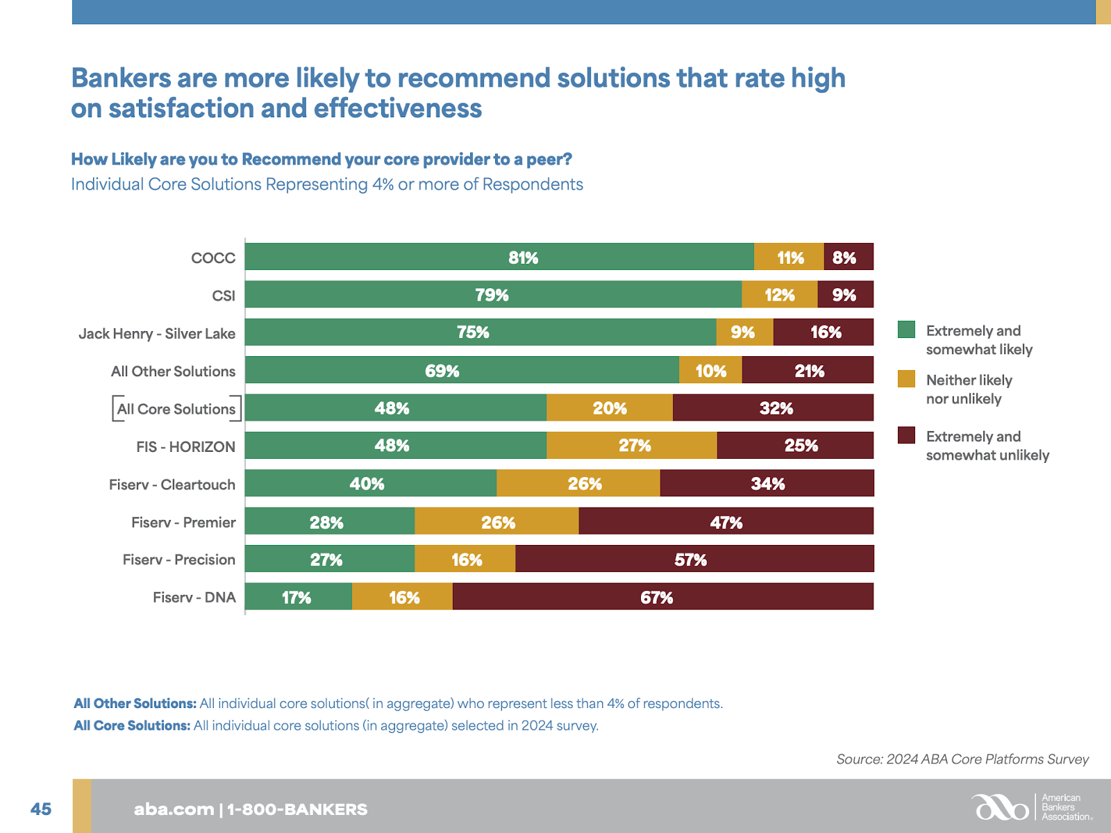 And here's the kicker: About a year ago, the American Bankers Association released their annual satisfaction survey of core banking providers. Want to guess where Fiserv ranked? Dead last. Bottom of the barrel. The worst-rated core provider among community banks and credit unions. Not exactly a ringing endorsement from the people who actually have to use their systems every day.